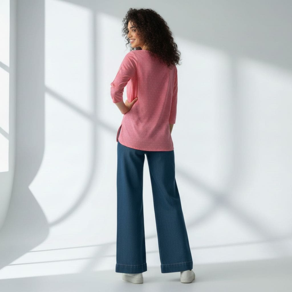 This Polka Pink Cotton Poplin Short Kurta has a V-Notch Neck and three-quarter sleeves. It has a relaxed fit and regular length. Made from cotton, it is soft and comfortable to wear.