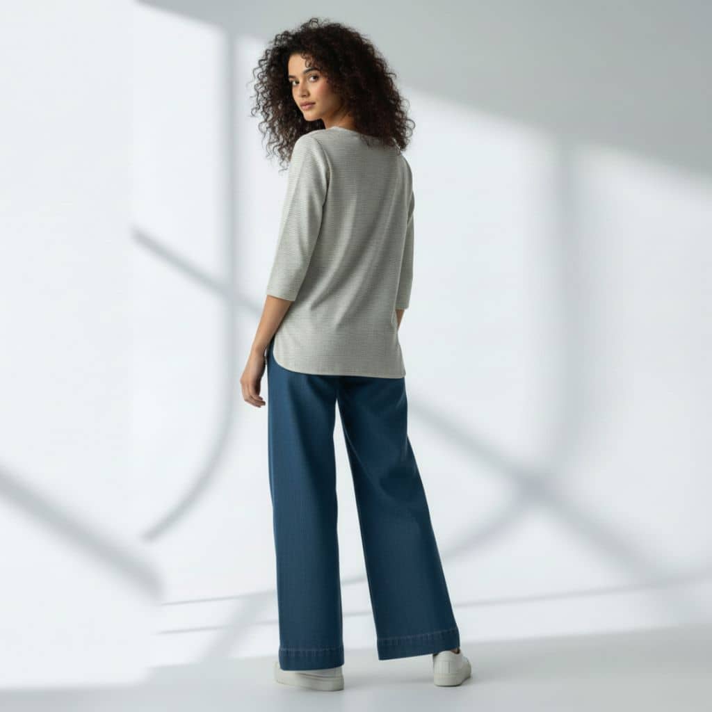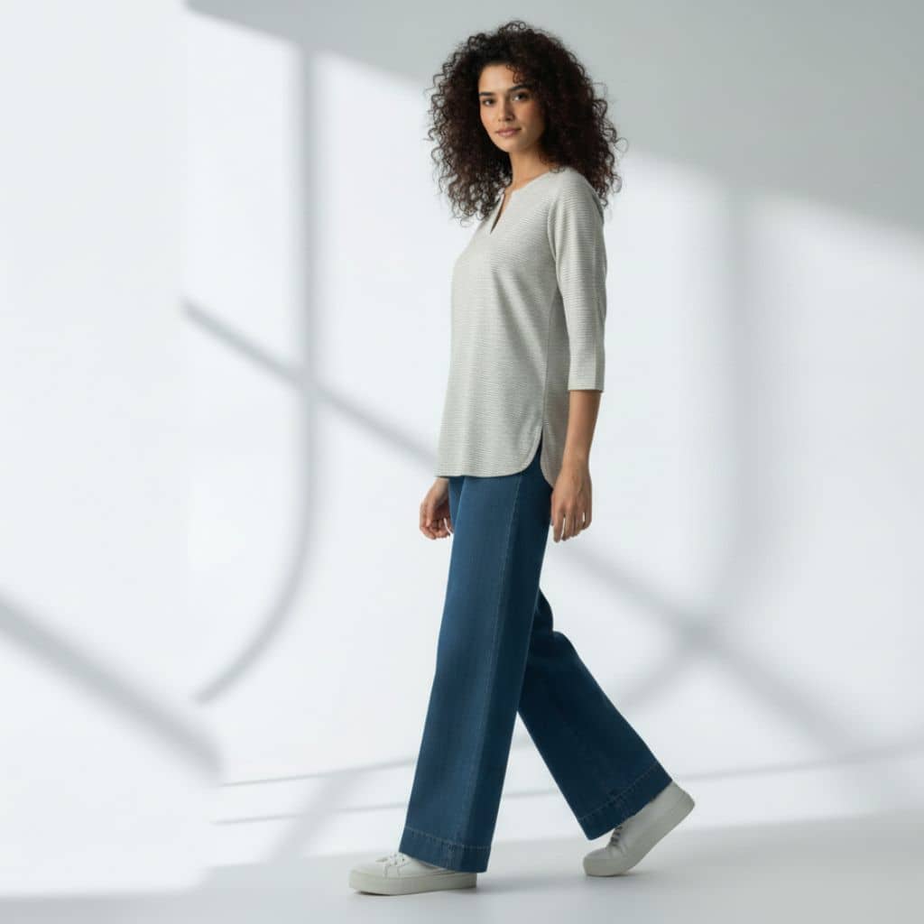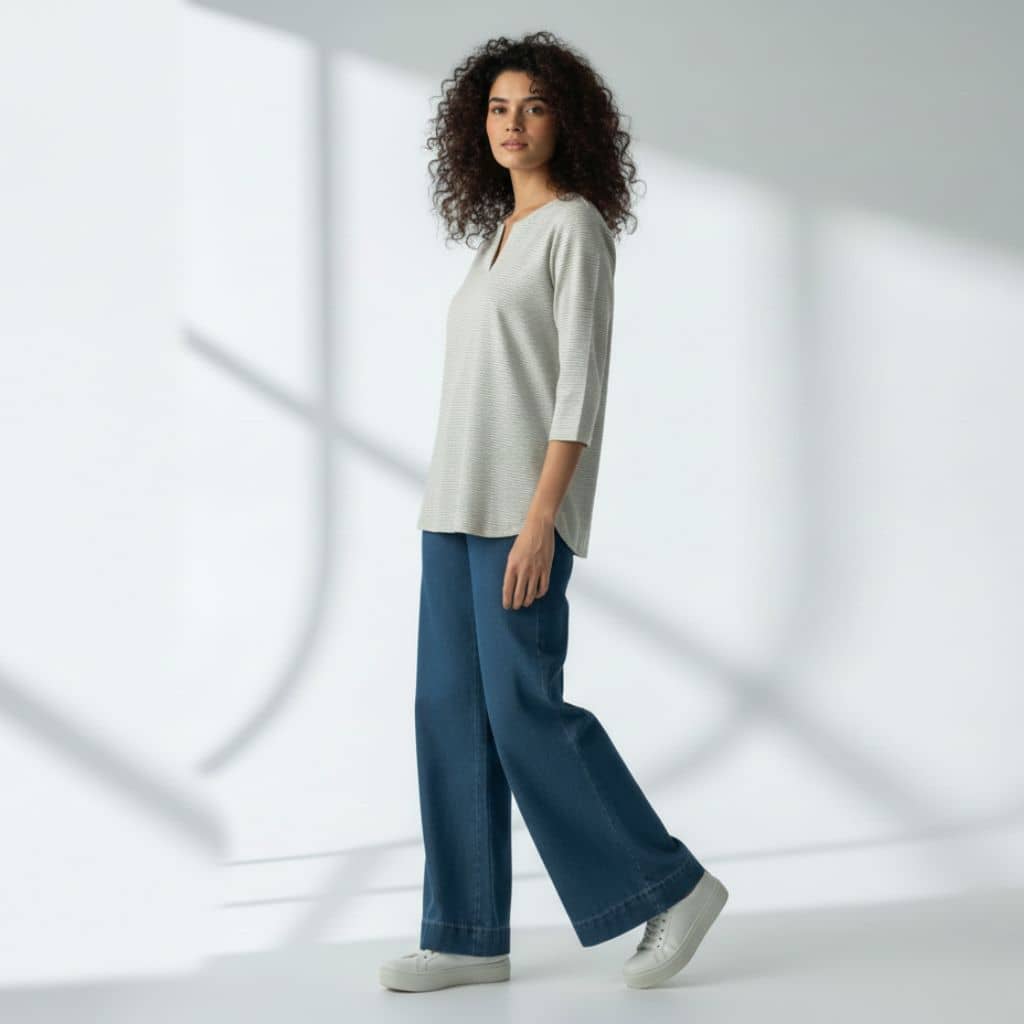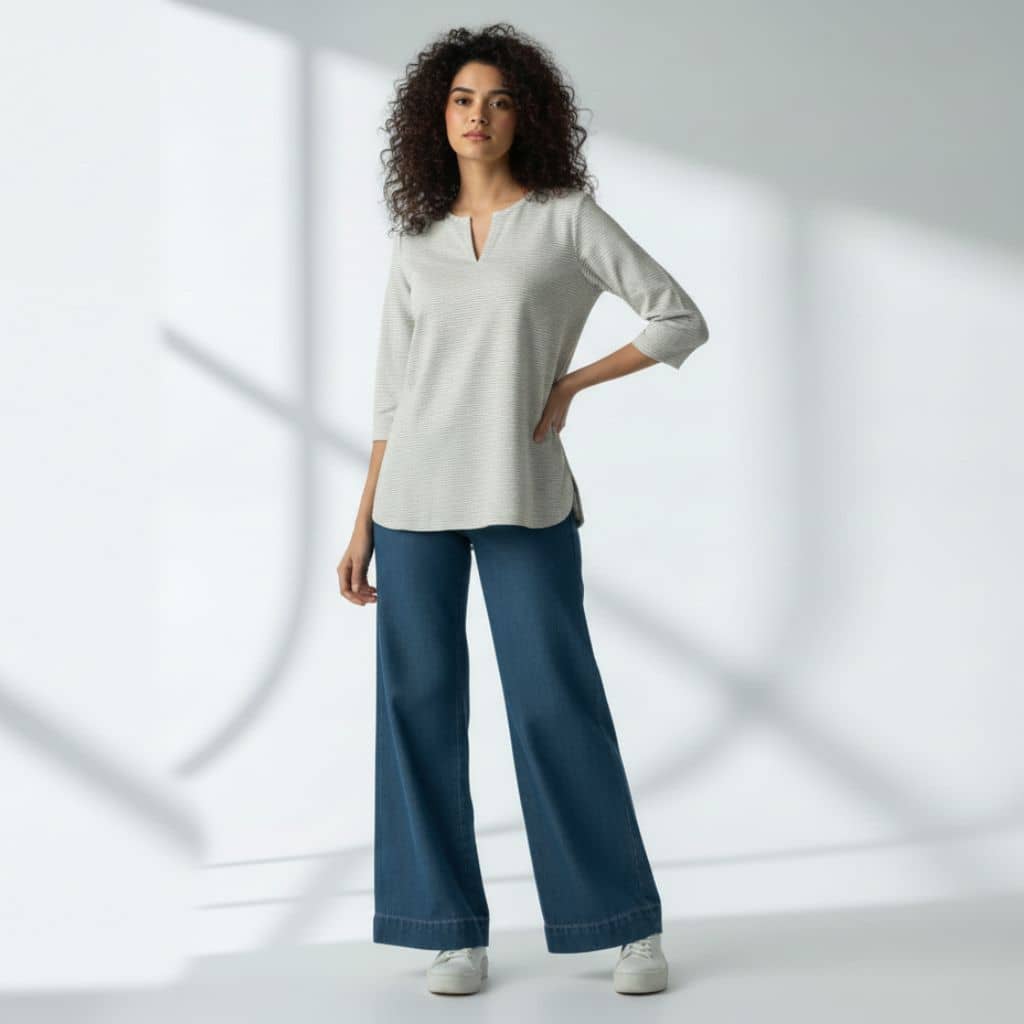 The Nautical Stripes Cotton V-Notch Neck Short Kurta