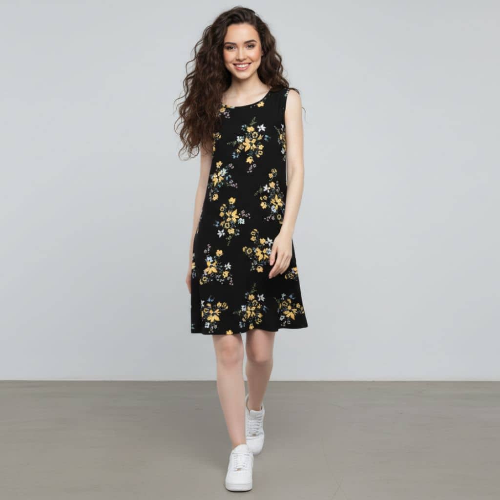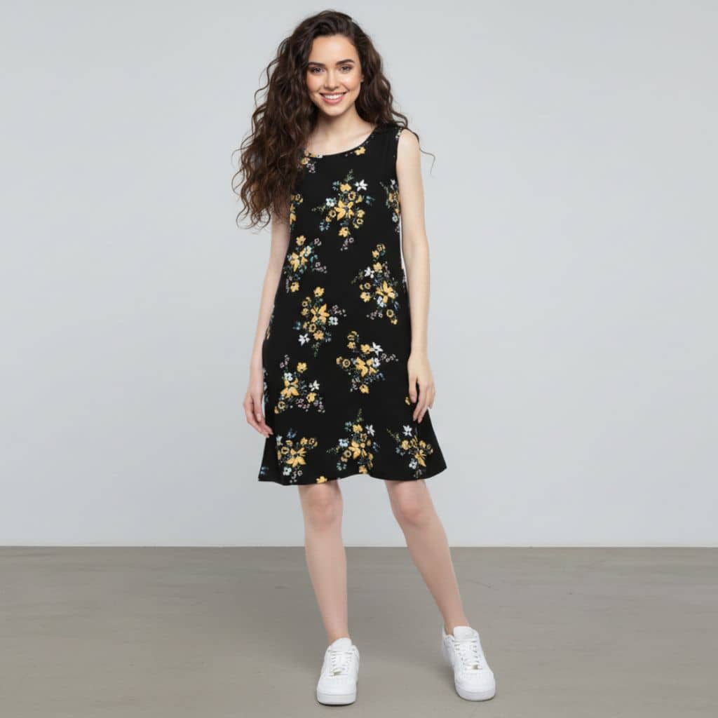 The Floral in Black Viscose WFH A-Line Dress